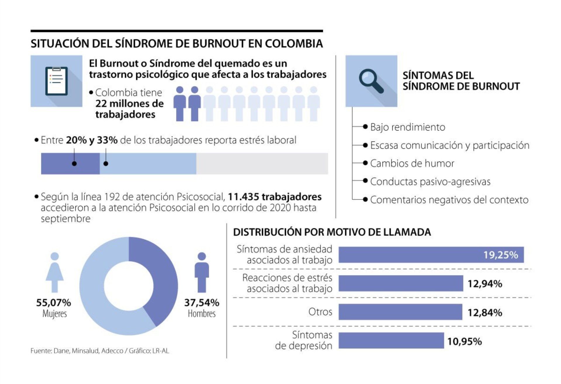 - Asuntoslegales (2020) Estrés laboral, una enfermedad común que sufre 33% de lostrabajadores en Colombia. Daniel Rojas Castañeda.